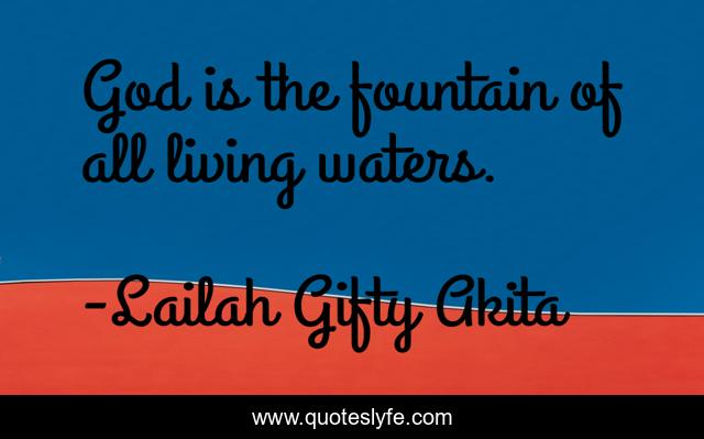 This page presents the quote "God is the fountain of all living waters.". Author of this quote is Lailah Gifty Akita. This quote is about inspiring, nature, science, waters, fountain, god,.