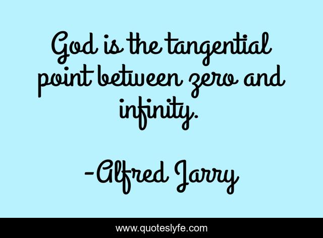 This page presents the quote "God is the tangential point between zero and infinity.". Author of this quote is Alfred Jarry. This quote is about point, infinity, between,.