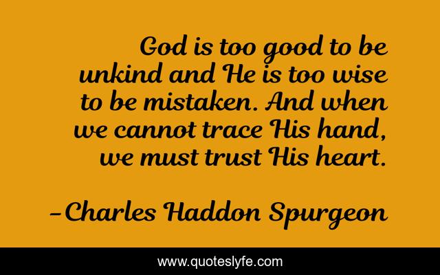 "Charles Haddon Spurgeon Quotes." Quoteslyfe.com, 2025. Fri. 05 Dec. 2025. <https://www.quoteslyfe.com/quote/God-is-too-good-to-be-unkind-119734>.