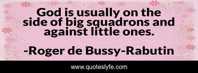 This page presents the quote "God is usually on the side of big squadrons and against little ones.". Author of this quote is Roger de Bussy-Rabutin. .
