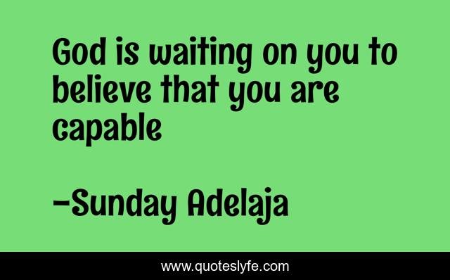 This page presents the quote "God is waiting on you to believe that you are capable". Author of this quote is Sunday Adelaja. This quote is about love, people, money, principles, selflessness, employment, worship, impact, living,.