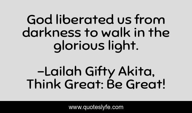 "Lailah Gifty Akita, Think Great: Be Great! Quotes." Quoteslyfe.com, 2025. Fri. 05 Dec. 2025. <https://www.quoteslyfe.com/quote/God-liberated-us-from-darkness-to-walk-85245>.