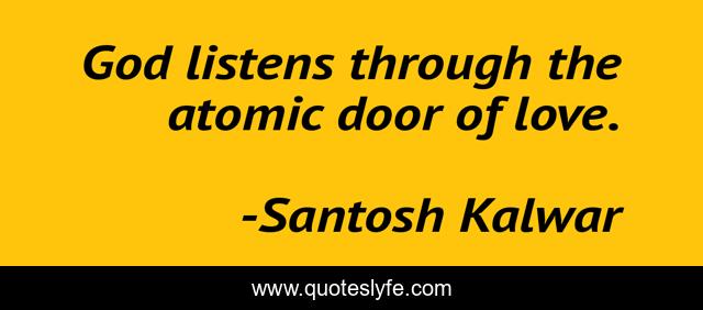 This page presents the quote "God listens through the atomic door of love.". Author of this quote is Santosh Kalwar. This quote is about god, love, door, affection,.