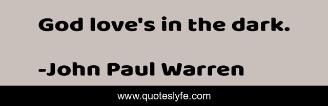 This page presents the quote "God love's in the dark.". Author of this quote is John Paul Warren. This quote is about faith, love, pastor-john-paul-warren, john-paul, church, grace, affection, trials-and-tribulations,.