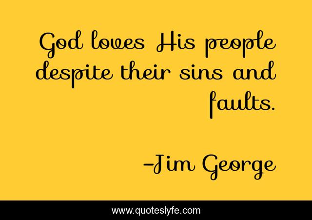 This page presents the quote "God loves His people despite their sins and faults.". Author of this quote is Jim George. This quote is about faith, love, people, god, sins, their, best, fault, christian,.