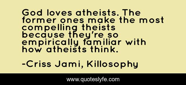"Criss Jami, Killosophy Quotes." Quoteslyfe.com, 2025. Mon. 08 Dec. 2025. <https://www.quoteslyfe.com/quote/God-loves-atheists-The-former-ones-make-103754>.