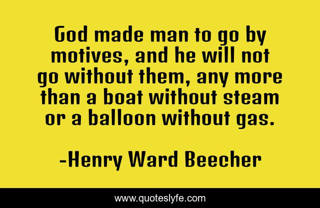 This page presents the quote "God made man to go by motives, and he will not go without them, any more than a boat without steam or a balloon without gas.". Author of this quote is Henry Ward Beecher. This quote is about balloon, boat, man,.