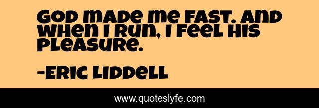 This page presents the quote "God made me fast. And when I run, I feel His pleasure.". Author of this quote is Eric Liddell. .