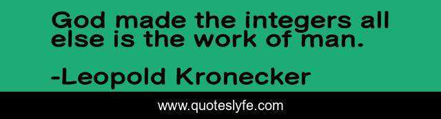 This page presents the quote "God made the integers all else is the work of man.". Author of this quote is Leopold Kronecker. This quote is about work, man, made,.