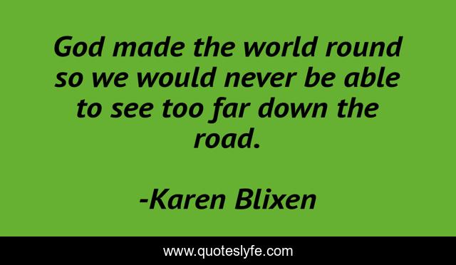 This page presents the quote "God made the world round so we would never be able to see too far down the road.". Author of this quote is Karen Blixen. This quote is about enthusiasm, inspirational,.