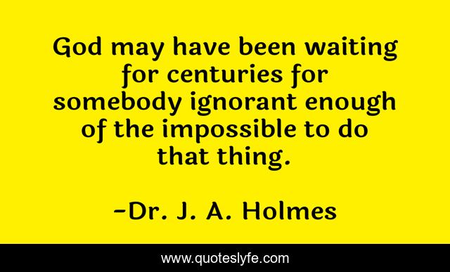 This page presents the quote "God may have been waiting for centuries for somebody ignorant enough of the impossible to do that thing.". Author of this quote is Dr. J. A. Holmes. .