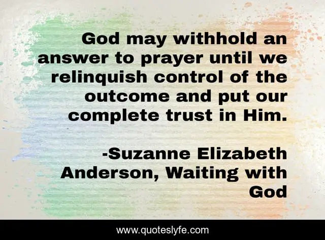 This page presents the quote "God may withhold an answer to prayer until we relinquish control of the outcome and put our complete trust in Him.". Author of this quote is Suzanne Elizabeth Anderson, Waiting with God. .