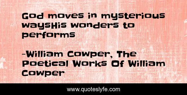 "William Cowper, The Poetical Works Of William Cowper Quotes." Quoteslyfe.com, 2025. Fri. 05 Dec. 2025. <https://www.quoteslyfe.com/quote/God-moves-in-mysterious-waysHis-wonders-to-24554>.