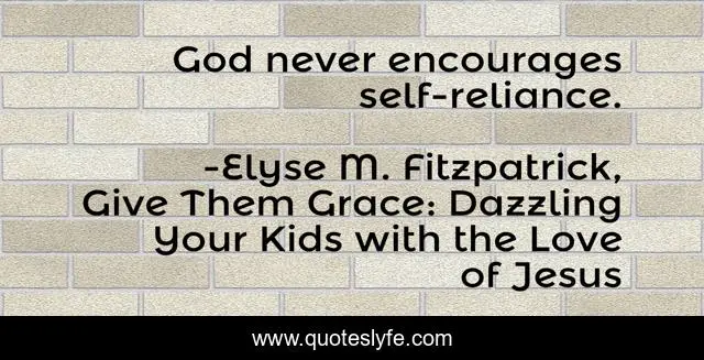"Elyse M. Fitzpatrick, Give Them Grace: Dazzling Your Kids with the Love of Jesus Quotes." Quoteslyfe.com, 2025. Sat. 06 Dec. 2025. <https://www.quoteslyfe.com/quote/God-never-encourages-self-reliance-206091>.