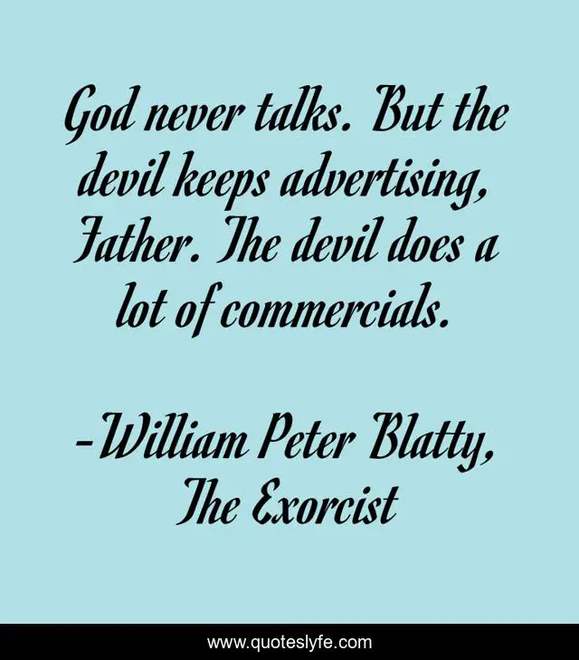 "William Peter Blatty, The Exorcist Quotes." Quoteslyfe.com, 2025. Tue. 23 Dec. 2025. <https://www.quoteslyfe.com/quote/God-never-talks-But-the-devil-keeps-25762>.