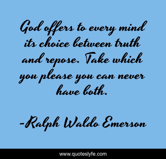 This page presents the quote "God offers to every mind its choice between truth and repose. Take which you please you can never have both.". Author of this quote is Ralph Waldo Emerson. .
