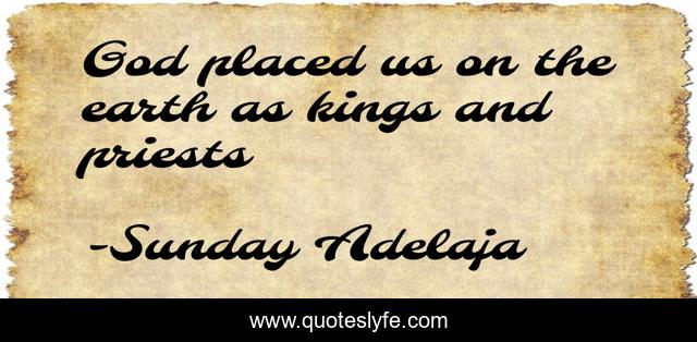 This page presents the quote "God placed us on the earth as kings and priests". Author of this quote is Sunday Adelaja. This quote is about longs, earth, priests, god,.