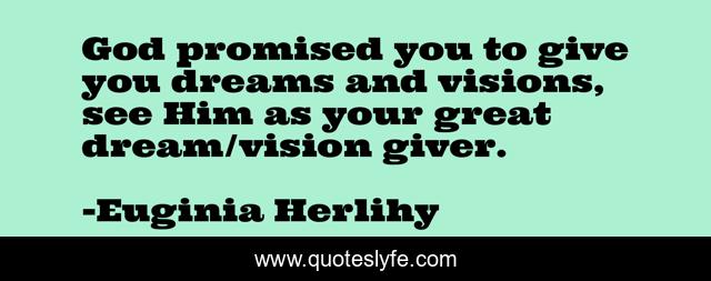This page presents the quote "God promised you to give you dreams and visions, see Him as your great dream/vision giver.". Author of this quote is Euginia Herlihy. .