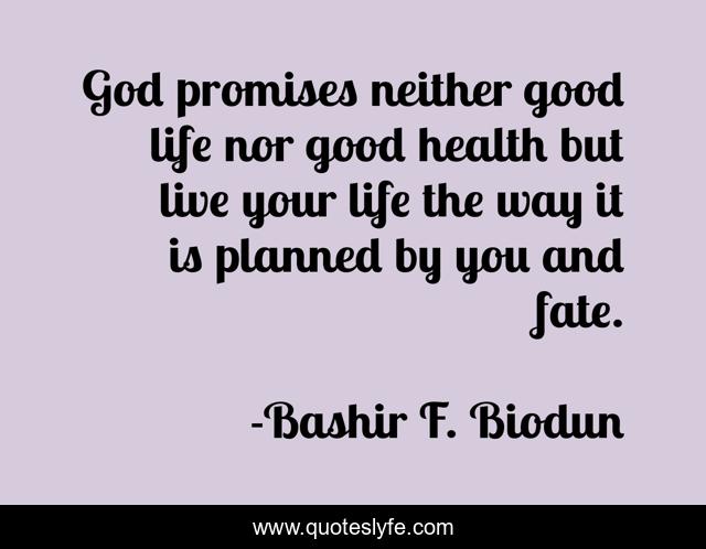 This page presents the quote "God promises neither good life nor good health but live your life the way it is planned by you and fate.". Author of this quote is Bashir F. Biodun. .