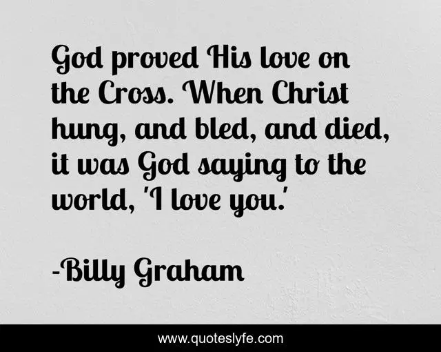 This page presents the quote "God proved His love on the Cross. When Christ hung, and bled, and died, it was God saying to the world, 'I love you.'". Author of this quote is Billy Graham. This quote is about i love you, god, world,.