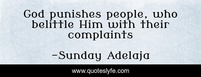 This page presents the quote "God punishes people, who belittle Him with their complaints". Author of this quote is Sunday Adelaja. This quote is about complaints, god, belittle, punishes, people,.
