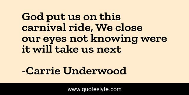This page presents the quote "God put us on this carnival ride, We close our eyes not knowing were it will take us next". Author of this quote is Carrie Underwood. .