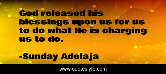 This page presents the quote "God released his blessings upon us for us to do what He is charging us to do.". Author of this quote is Sunday Adelaja. This quote is about god, blessing, charging,.