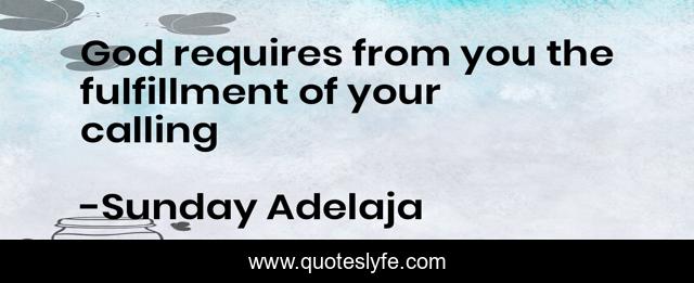 This page presents the quote "God requires from you the fulfillment of your calling". Author of this quote is Sunday Adelaja. This quote is about god, require, fulfillment, calling,.