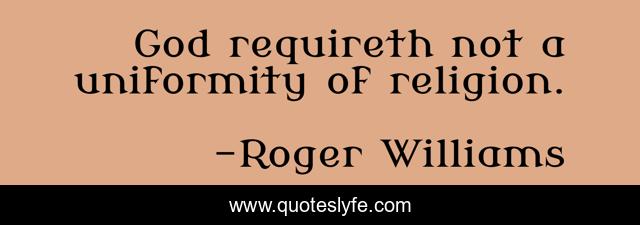 This page presents the quote "God requireth not a uniformity of religion.". Author of this quote is Roger Williams. This quote is about god, uniformity,.