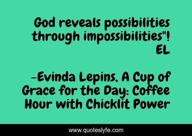 "Evinda Lepins, A Cup of Grace for the Day: Coffee Hour with Chicklit Power Quotes." Quoteslyfe.com, 2025. Sat. 06 Dec. 2025. <https://www.quoteslyfe.com/quote/God-reveals-possibilities-through-impossibilities-EL-115141>.