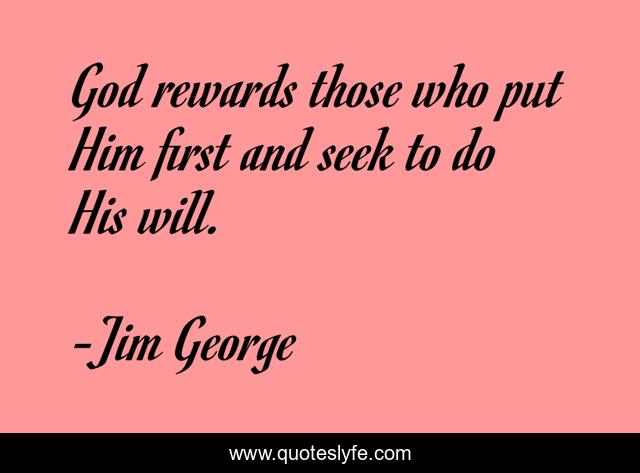 "Jim George Quotes." Quoteslyfe.com, 2025. Fri. 05 Dec. 2025. <https://www.quoteslyfe.com/quote/God-rewards-those-who-put-Him-first-160307>.