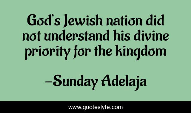 This page presents the quote "God’s Jewish nation did not understand his divine priority for the kingdom". Author of this quote is Sunday Adelaja. This quote is about jewish, priority, divine, nation,.