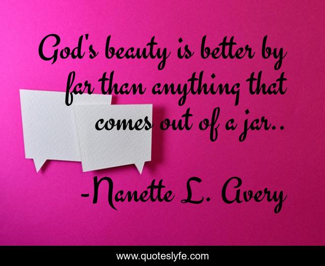 This page presents the quote "God's beauty is better by far than anything that comes out of a jar..". Author of this quote is Nanette L. Avery. This quote is about beauty-of-life, self-awareness, beauty,.