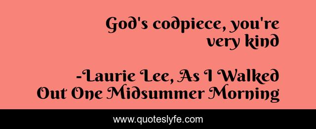 "Laurie Lee, As I Walked Out One Midsummer Morning Quotes." Quoteslyfe.com, 2025. Fri. 05 Dec. 2025. <https://www.quoteslyfe.com/quote/God-s-codpiece-you-re-very-kind-89980>.