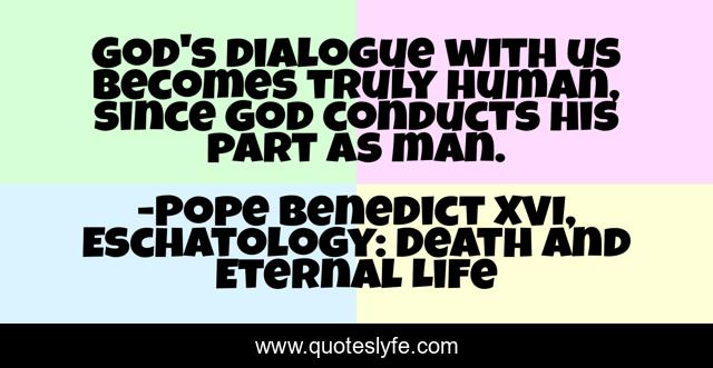 "Pope Benedict XVI, Eschatology: Death and Eternal Life Quotes." Quoteslyfe.com, 2025. Fri. 05 Dec. 2025. <https://www.quoteslyfe.com/quote/God-s-dialogue-with-us-becomes-truly-201729>.