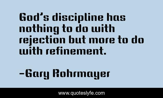 This page presents the quote "God’s discipline has nothing to do with rejection but more to do with refinement.". Author of this quote is Gary Rohrmayer. This quote is about discipline, spiritual-growth, leaders, leadership-development, spiritual-discipline, leadership,.