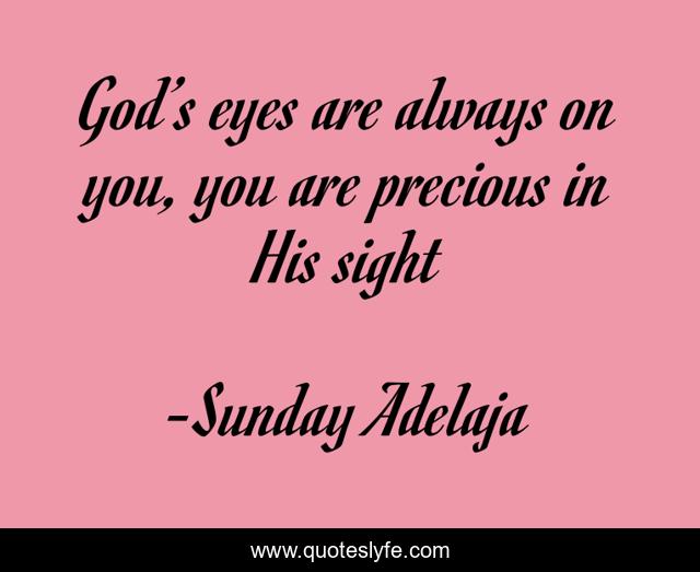 This page presents the quote "God’s eyes are always on you, you are precious in His sight". Author of this quote is Sunday Adelaja. This quote is about eye, god, calling, purpose, sight, precious, fulfillment,.