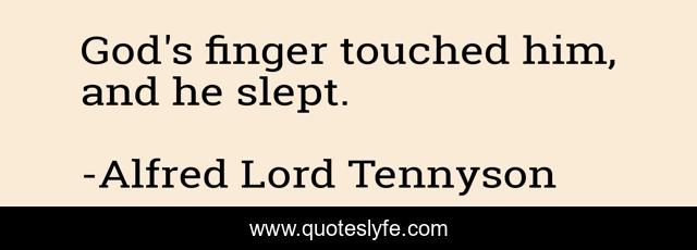 This page presents the quote "God's finger touched him, and he slept.". Author of this quote is Alfred Lord Tennyson. This quote is about finger, him, he,.