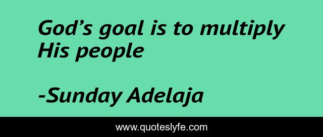 This page presents the quote "God’s goal is to multiply His people". Author of this quote is Sunday Adelaja. This quote is about multiply, god, calling, purpose, fulfillment,.