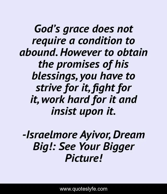 "Israelmore Ayivor, Dream Big!: See Your Bigger Picture! Quotes." Quoteslyfe.com, 2025. Fri. 05 Dec. 2025. <https://www.quoteslyfe.com/quote/God-s-grace-does-not-require-a-93061>.