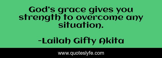 This page presents the quote "God’s grace gives you strength to overcome any situation.". Author of this quote is Lailah Gifty Akita. This quote is about inspiring, strength, uplifting, endurance, motivation, encouragement, fighting-spirit, challenges, spirituality,.
