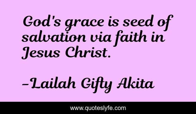 This page presents the quote "God's grace is seed of salvation via faith in Jesus Christ.". Author of this quote is Lailah Gifty Akita. This quote is about jesus-christ, god, salvation, christian-living, religious-faith,.
