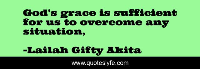 This page presents the quote "God's grace is sufficient for us to overcome any situation, ". Author of this quote is Lailah Gifty Akita. This quote is about overcomer, positive-attitude, grace, inspirational, enthusiasm,.