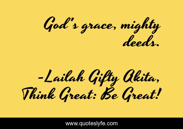 "Lailah Gifty Akita, Think Great: Be Great! Quotes." Quoteslyfe.com, 2025. Sat. 06 Dec. 2025. <https://www.quoteslyfe.com/quote/God-s-grace-mighty-deeds-201102>.