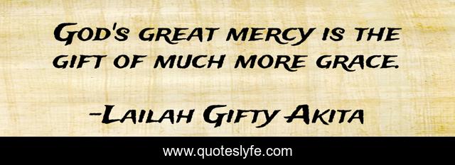This page presents the quote "God's great mercy is the gift of much more grace.". Author of this quote is Lailah Gifty Akita. This quote is about christian, inspiring, forgiveness, grace, mercy,.