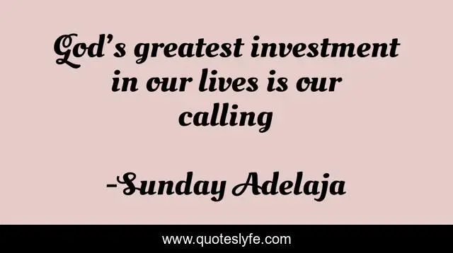 This page presents the quote "God’s greatest investment in our lives is our calling". Author of this quote is Sunday Adelaja. This quote is about life, blessing, finance, invest, work, calling, job, purpose, money,.