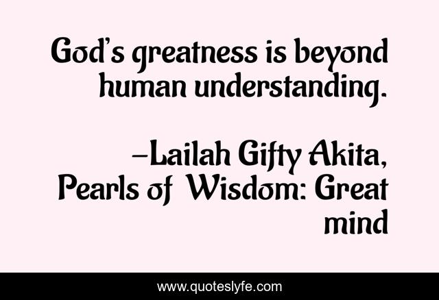 "Lailah Gifty Akita, Pearls of Wisdom: Great mind Quotes." Quoteslyfe.com, 2025. Mon. 08 Dec. 2025. <https://www.quoteslyfe.com/quote/God-s-greatness-is-beyond-human-understanding-130365>.