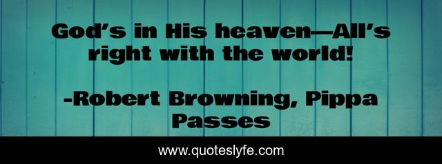 "Robert Browning, Pippa Passes Quotes." Quoteslyfe.com, 2025. Sat. 06 Dec. 2025. <https://www.quoteslyfe.com/quote/God-s-in-His-heaven-All-s-215945>.