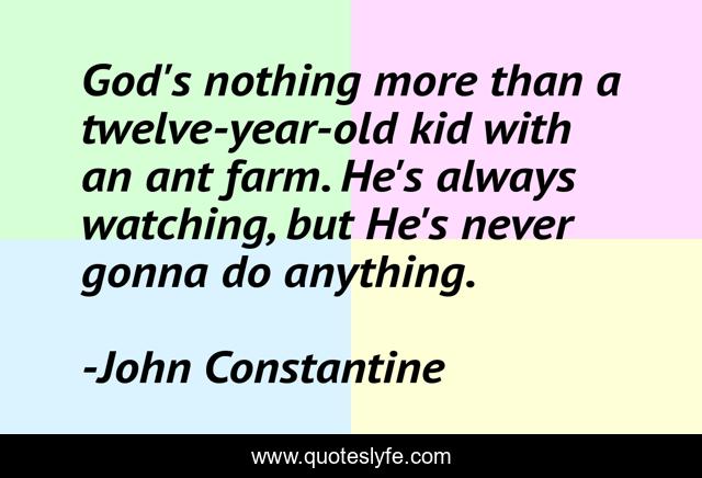 This page presents the quote "God's nothing more than a twelve-year-old kid with an ant farm. He's always watching, but He's never gonna do anything.". Author of this quote is John Constantine. This quote is about god, theology,.