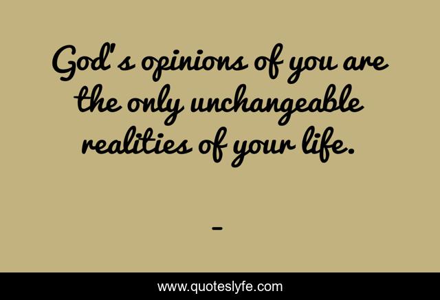 This page presents the quote "God's opinions of you are the only unchangeable realities of your life.". Author of this quote is . This quote is about edmond-mbiaka, god-s-opinions-of-you, reality, unchangeable, realities,.